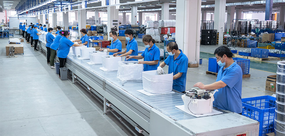 10萬㎡大型生產(chǎn)基地,26臺注塑機,1條噴涂機器人涂裝生產(chǎn)線,4條機器人沖壓自動化生產(chǎn)線和3條組裝線 ,月產(chǎn)量高達50000臺